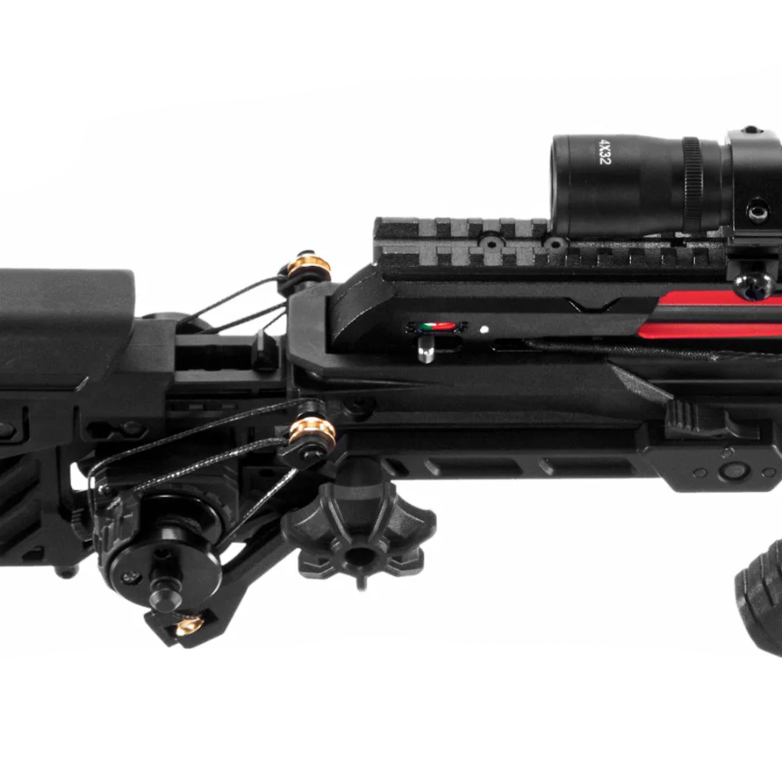 Удобство использования обеспечивается встроенной механической лебедкой, которая особенно полезна при стрельбе в ограниченном пространстве. Её рычаг можно закрепить с любой стороны арбалета или снять при необходимости.