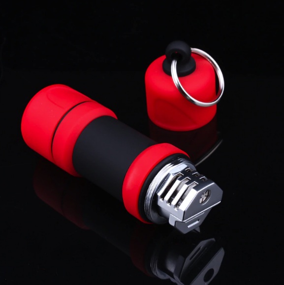 Водонепроницаемая ветростойкая газовая зажигалка. Герметичный корпус предотвращает попадание воды. Очень компактная, можно носить как брелок на связке ключей. С двух сторон откручивающие крышки, оснащенные маленьким зеркалом. Заводное кольцо для ключей в комплекте. Под крышкой есть небольшая полость, которую можно использовать для хранения НАЗ.