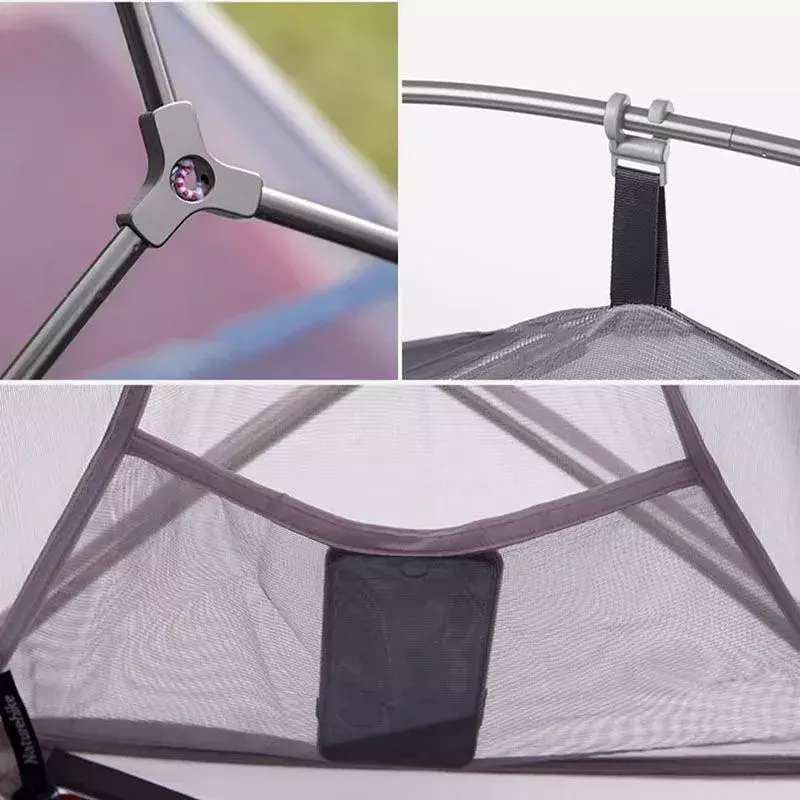 Внутренняя палатка фиксируется на самостоящих дугах надежными крючками. Внешний тент крепится и натягивается с помощью фастексов Duraflex.