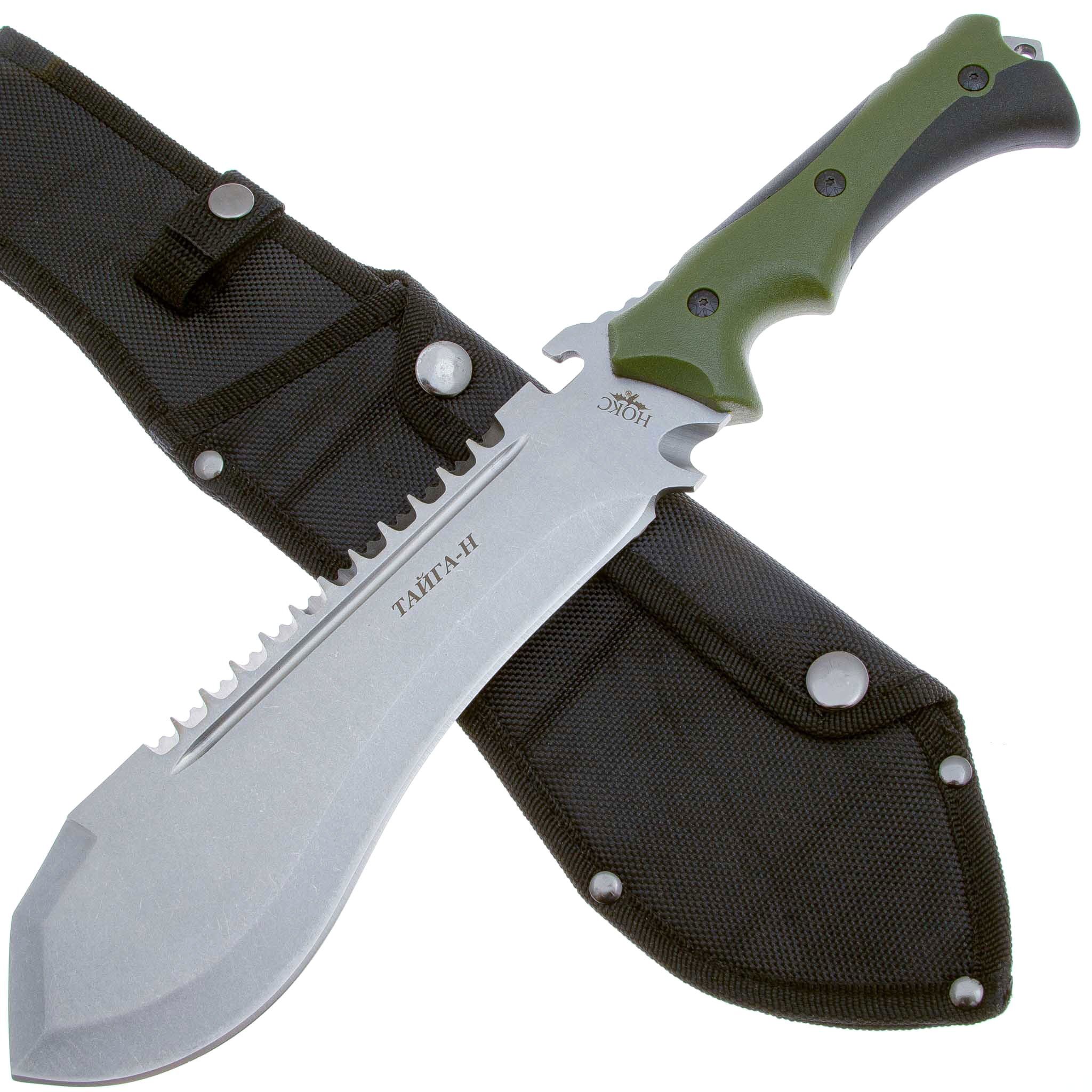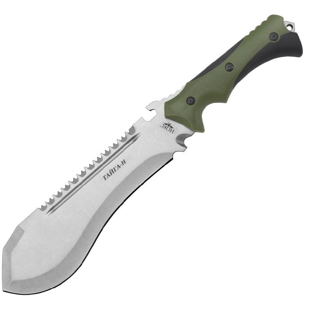 Тайга — легкий универсальный нож-мачете, который отлично выполняет функции походного ножа, рубящего инструмента и в случае необходимости его можно применить в качестве пилы. Пластиковая рукоять не боится влаги и надежно удерживается в руке при силовой работе. Темный цвет клинка не дает бликов. Имеется отверстием для темляка. Преимуществом является небольшой вес и полный функционал мачете Тайга-Н. Область применения походы, рыбалка, охота, вылазки на природу и комплектация автомобиля для любителей активного отдыха.