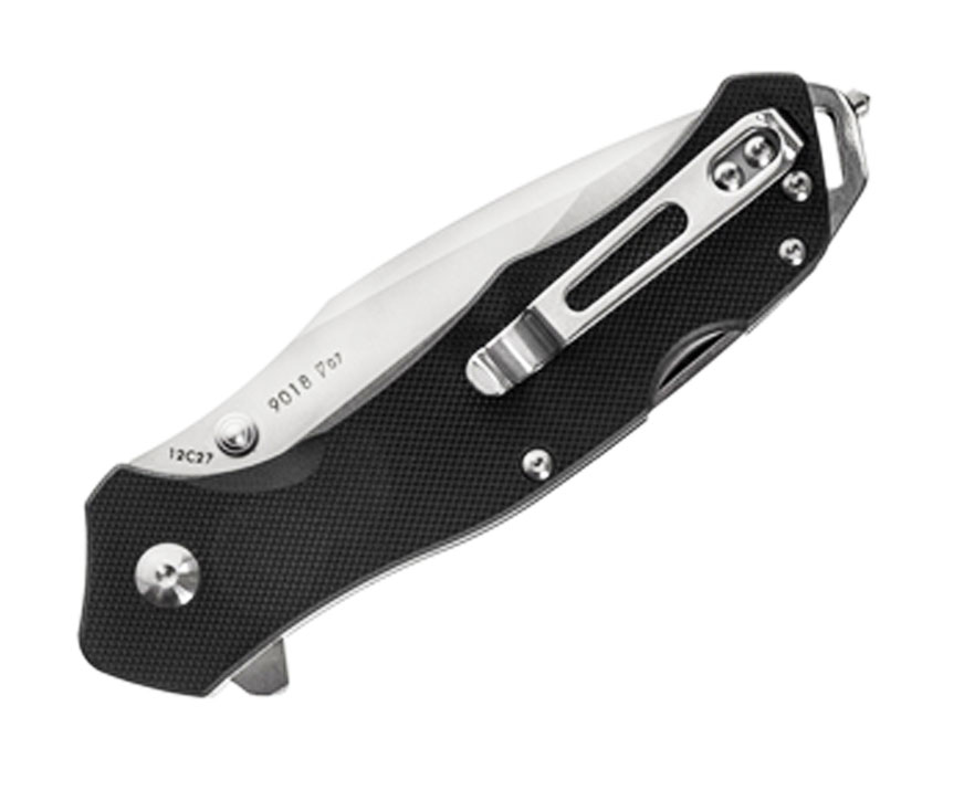 Данный нож сочетает в себе универсальность, тактические характеристики и современный дизайн.Сталь Sandvik 12C27. Благодаря своим высоким рабочим характеристикам получила популярность среди ножеделов. Обладает высокой устойчивостью к коррозии и оптимальным соотношением "вязкость-упругость". За счет наличия двух глубоких подпальцевых выемок нож имеет комфортный и безопасный хват.