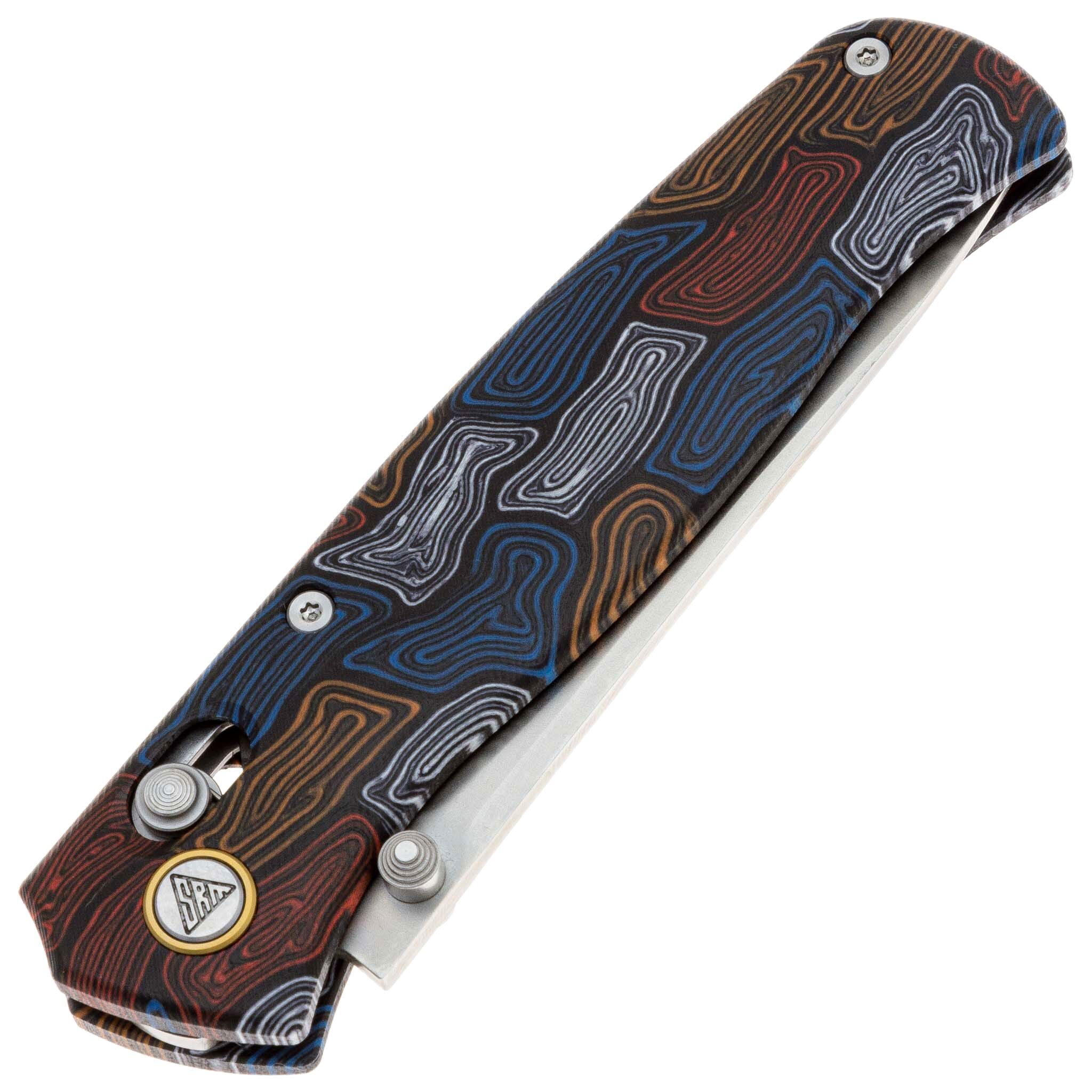 Клинок SRM Medal выполнен из ламината, в основе которого лежит высокоуглеродистая сталь 140Cr, использованная в качестве сердечника. Это решение обеспечивает выдающуюся стойкость к заточке, сопоставимую с характеристиками порошковой стали S35VN, как утверждает производитель. Обкладки ламината не только придают ножу эстетическую привлекательность, но и улучшают его устойчивость к коррозии. Универсальная форма клинка с высокими прямыми спусками гарантирует эффективный и точный рез.
