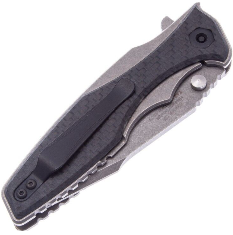 Рукоятка 0393GLCF изготовлена из прочного и легкого титана с «рабочим» покрытием Рика - новым покрытием, которое скрывает потертости и царапины даже лучше, чем стоунвош. В дневное время контурная накладка из углеродного волокна придает модели 0393GLCF ощущение стиля. Но ночью 0393CF раскрывает другую сторону своего характера. Отнесите его в темную комнату, и вы увидите мягкое зеленое свечение, исходящее от углеродного волокна. Это уникальное углеродное волокно позволяет легко найти свой нож в темноте - и определенно делает его предметом разговора!