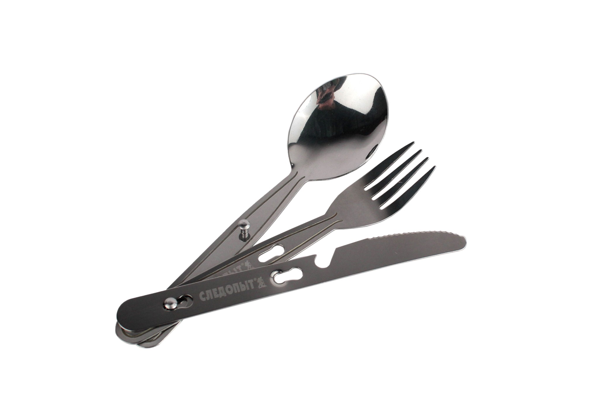 Набор столовых приборов. Включает в себя: ложку, вилку, нож и открывалку. Описание: Приборы изготовлены из пищевой нержавеющей стали. Легкий, удобный в употреблении, красивый набор будет служить Вам долго, обеспечивая комфорт в различных условиях.