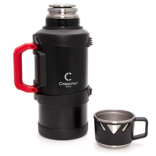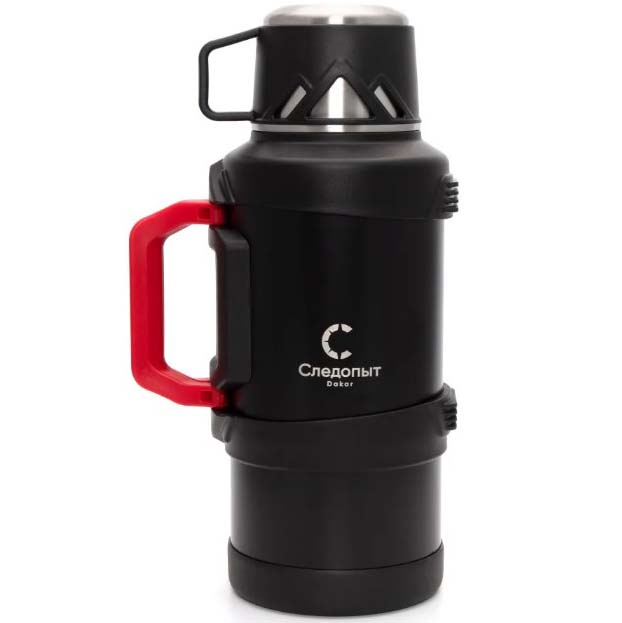 Премиальная серия термосов «Следопыт –DAKAR» отличается высокими теплоизоляционными свойствами и уникальным современным дизайном, символизирующим прочность и надежность. Внутренняя колба изготовлена из нержавеющей стали AISI 316, которая является криогенным конструкционным металлом и имеет повышенные антикоррозийные свойства. Сталь применяется в пищевой и медицинской промышленности. Термос имеет двойные стенки с вакуумной изоляцией и оснащен пробкой-кнопкой, что позволяет быстро вылить содержимое, не отвинчивая пробку полностью. Одной из особенностей данной серии является фильтр и съемный стакан-сито для заварки чая непосредственно внутри термоса. Термос комплектуется стильной вместительной кружкой-крышкой объемом 400 мл. Кроме того, он оснащен удобными складными ручками для переноски и съемным регулируемым наплечным ремнем длиной до 105 см. Термос «Следопыт-DAKAR» - необходимый атрибут в походе, на рыбалке и загородной прогулке, а также отличный подарок к любому знаменательному событию.