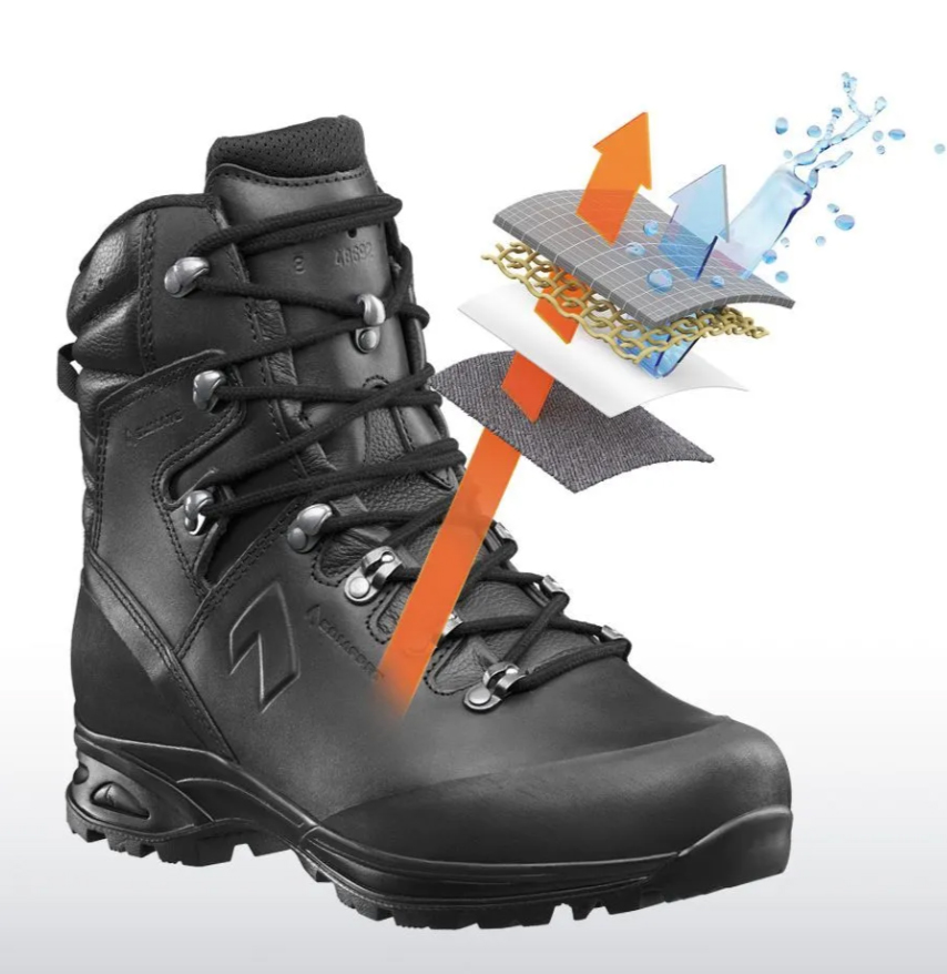 Климатическая система HAIX® CLIMATE SYSTEM позволяет повысить интенсивность работы мембранного пакета за счет активного отвода испарений от внешнего слоя мембраны посредством вспененного материала с открытыми порами и вентиляционными отверстиями в верхней части ботинка. Система обеспечивает «прокачку» воздуха во время движения.