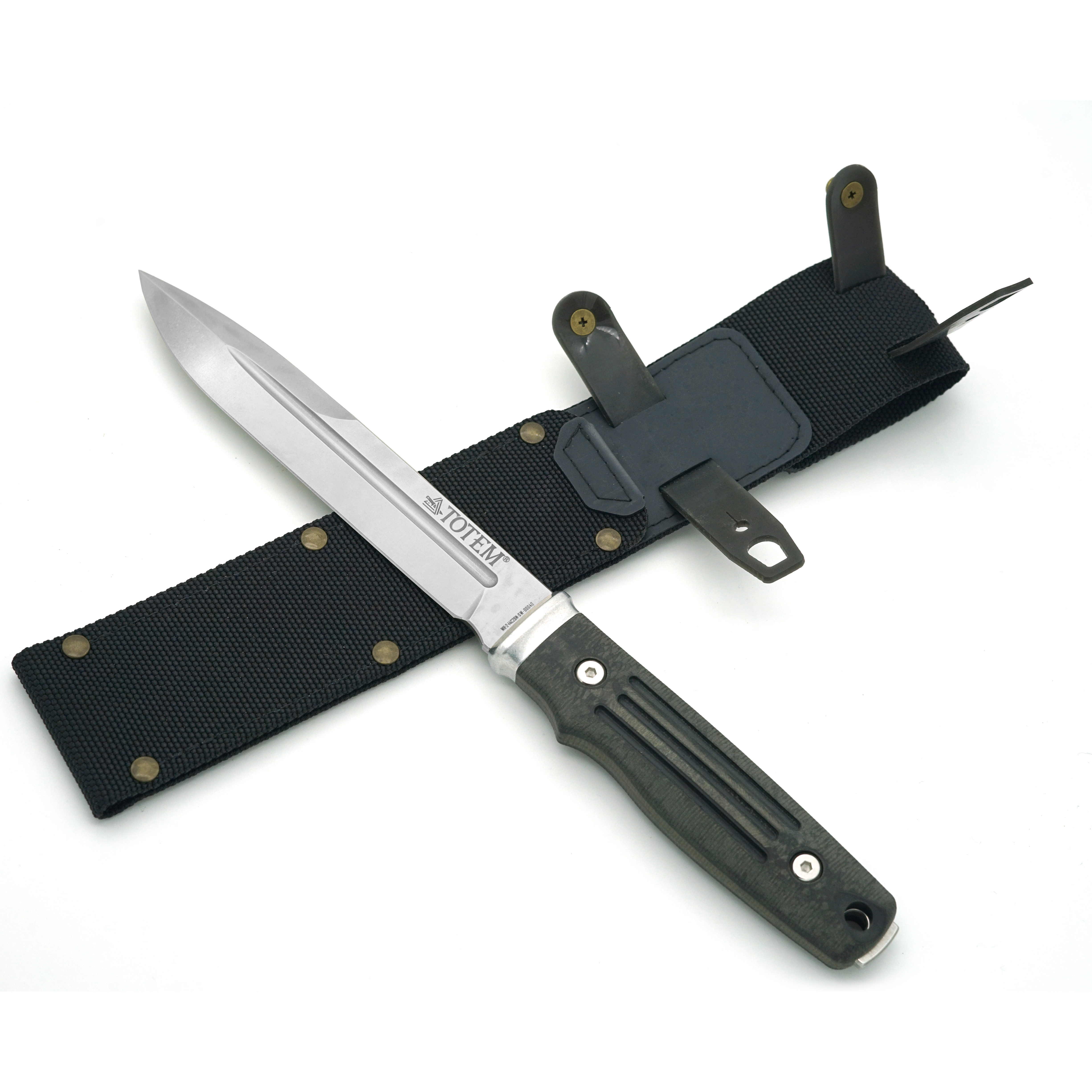 В качестве накладок на рукояти установлен их тактический вариант, который благодаря выступу в передней части рукояти и отсутствия навершия, обеспечивает более точное манипулирование ножом и быстрое извлечение из ножен.
